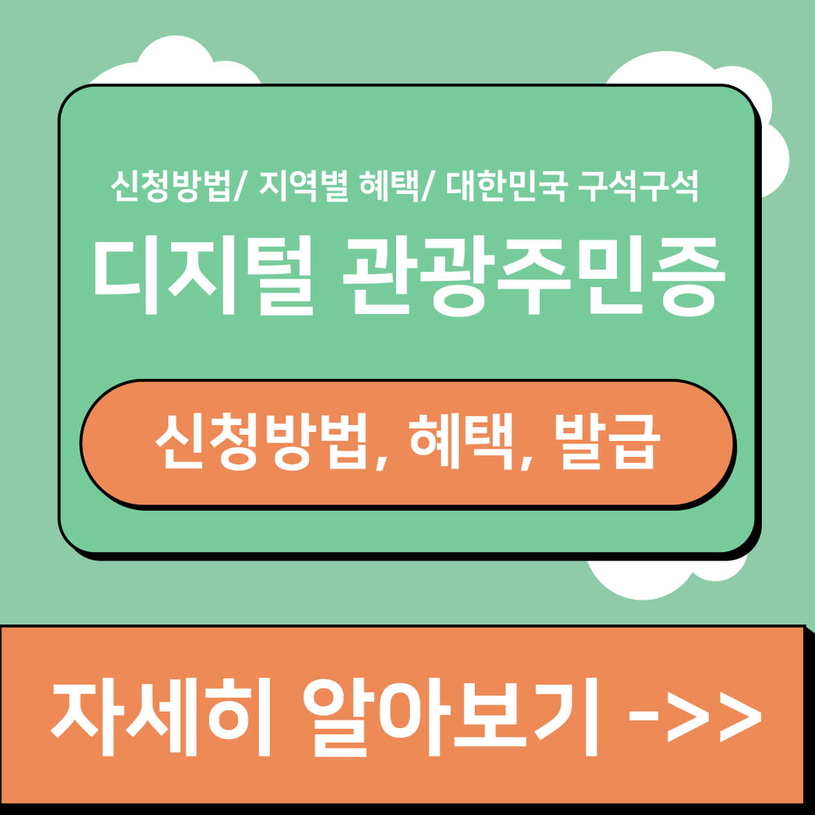 여행은 즐겁습니다. 하지만 즐거운 만큼 금전적으로 지불을 해야 합니다. 그런데 국내여행을 하면서 할인을 받고 여행을 다녀올 수 있다면? 즐거운 여행과 더불어 돈도 아끼는 일석이조가 아닐까요?? 모든 분들이 이런 혜택을 누릴 수 있게 디지털 관광주민증이 무엇인지 신청방법과 지역별 어떠한 혜택들이 있는지 그리고 현재 코레일 관광 이벤트가 있는데 이벤트 혜택과 대한민국 구석구석을 제대로 알아보겠습니다.