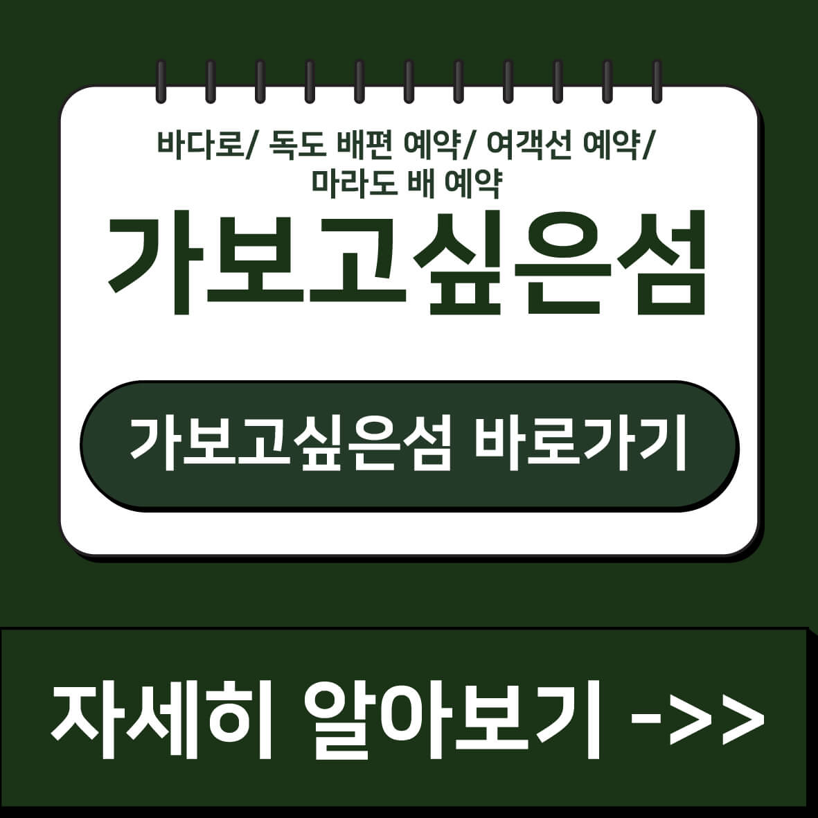 우리의 땅 독도 배편 예약, 마라도 배 예약, 여객선 예약 그동안 비싼 가격 때문에 고민 많으셨을 겁니다. 가보고 싶은 섬 예약을 통하여 50% 할인된 금액으로 마라도 배 예약, 독도 배편 예약, 여객선 예약 할 수 있습니다. 가보고 싶은 섬 예약으로 할인받아 여객선 예약, 독도 배편 예약, 마라도 배 예약하고 떠나보세요. 가보고 싶은 섬 바다로 사업과 여객선 예약 최대 50% 할인받고 독도 배편 예약, 마라도 배 예약 할 수 있는 방법 알려드리겠습니다.